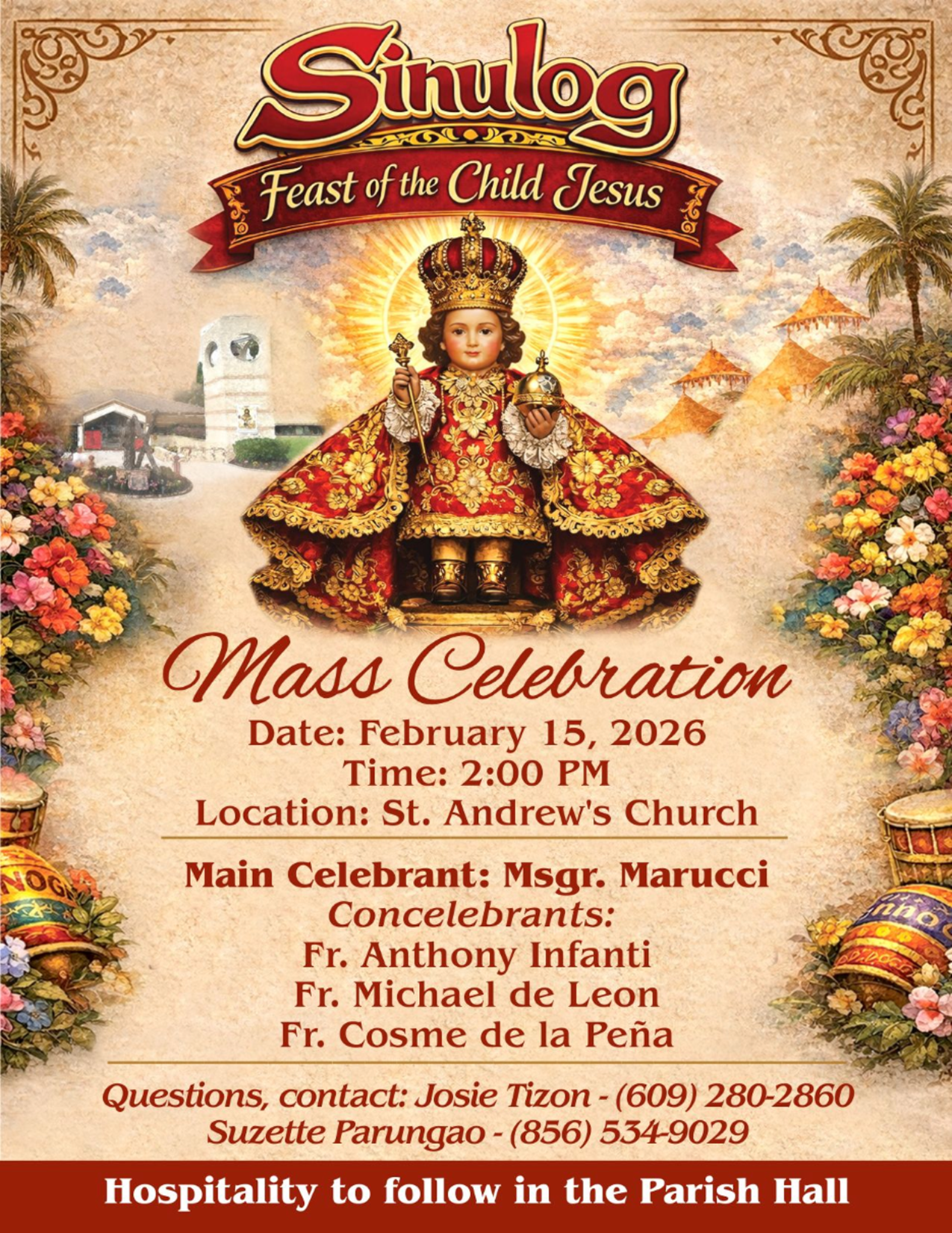 You may call 856-784-3878 or e-mail Fr. Infanti